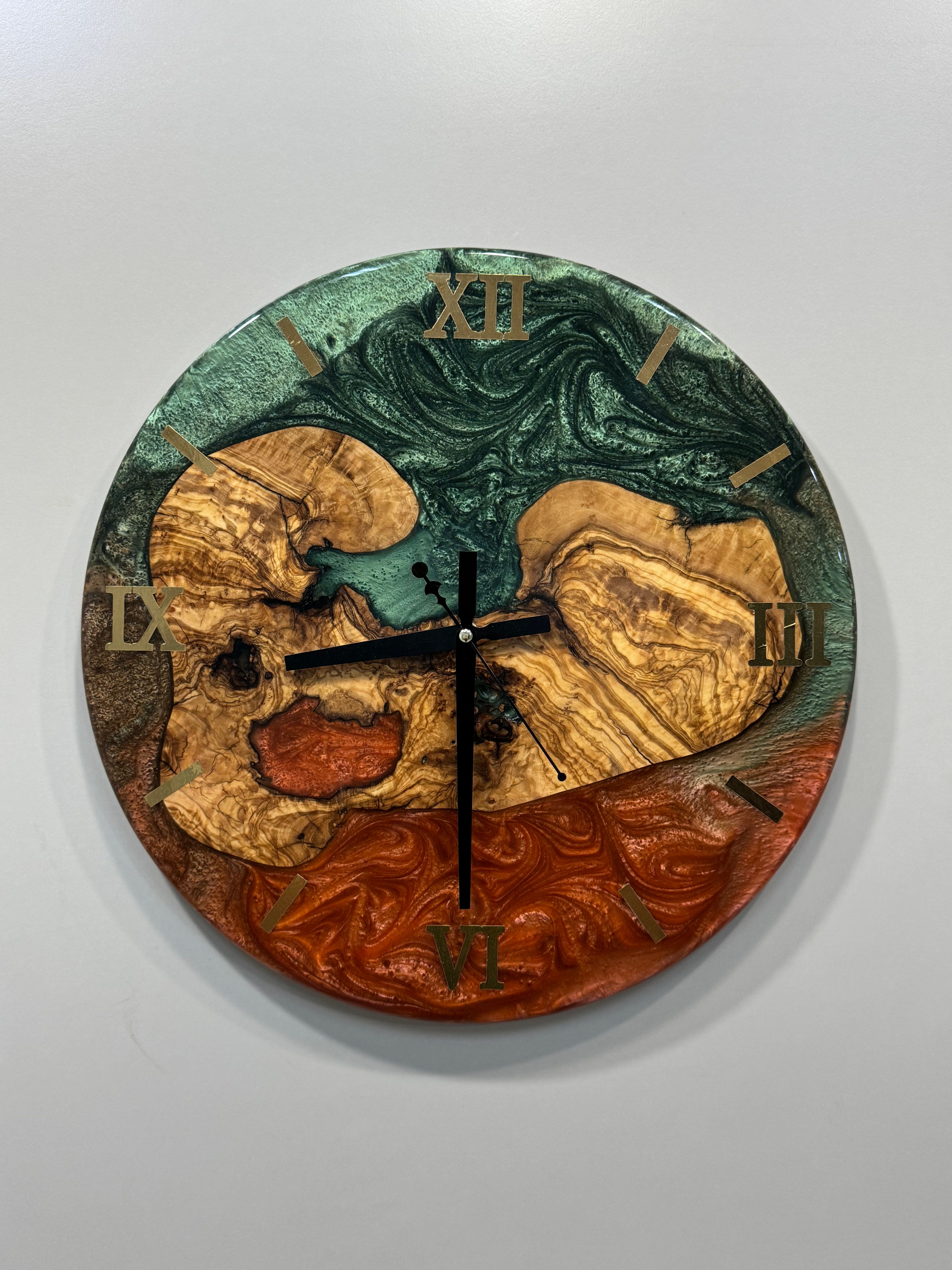 Epoksili Zeytin Turuncu - YeÅŸil - Siyah Duvar Saati